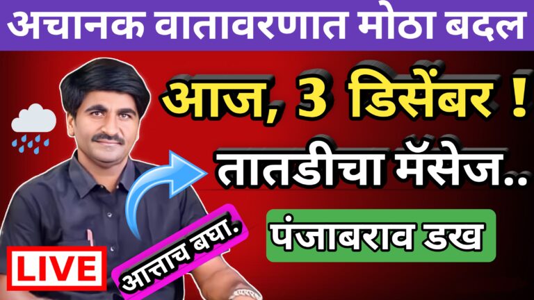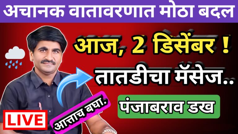 🔴 महाराष्ट्रात 10 डिसेबंर ते 13 डिसेबंर दरम्याण पावसाचे वातावरण …