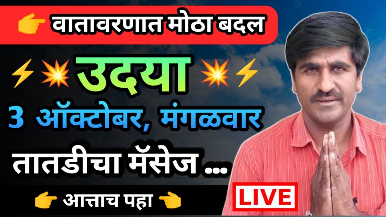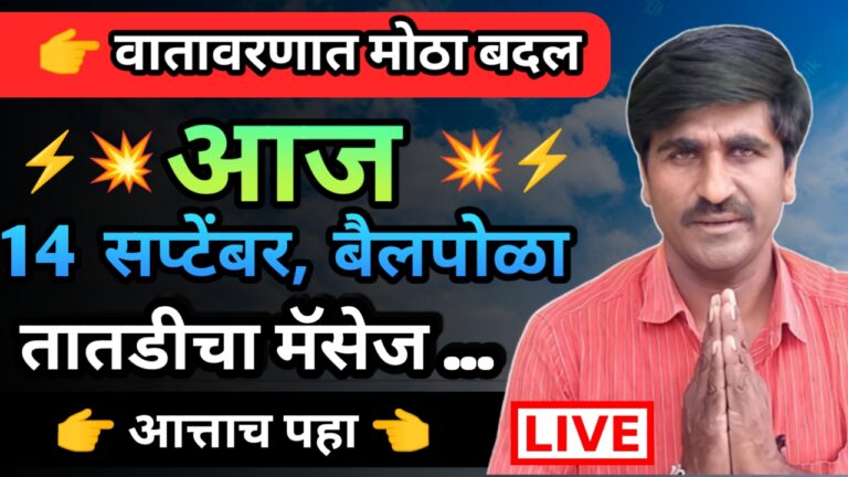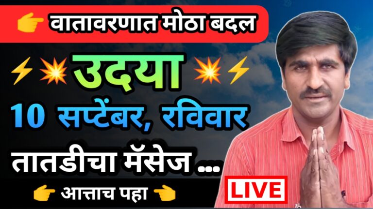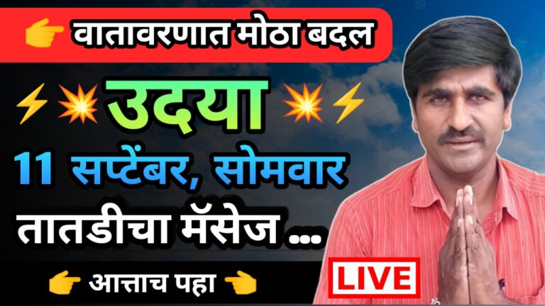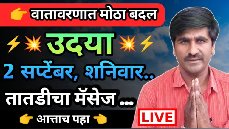 *महाराष्ट्रात दि.5,6,7,8 सप्टेंबर पावसाचा अंदाज या दरम्याण राज्यात भाग बदलत …