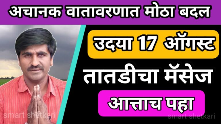 *महाराष्ट्रात दि.5,6,7,8 सप्टेंबर पावसाचा अंदाज या दरम्याण राज्यात भाग बदलत …